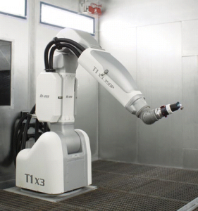 Stäubli’s paint solutions are based around some of its TX and RX robots. Process parameters are controlled via the company’s PaintiXen software, which controls the parameters like flow rate, atomization, and electrostatic charge. Stäubli claims that this software reduces solvent and paint by 30%.